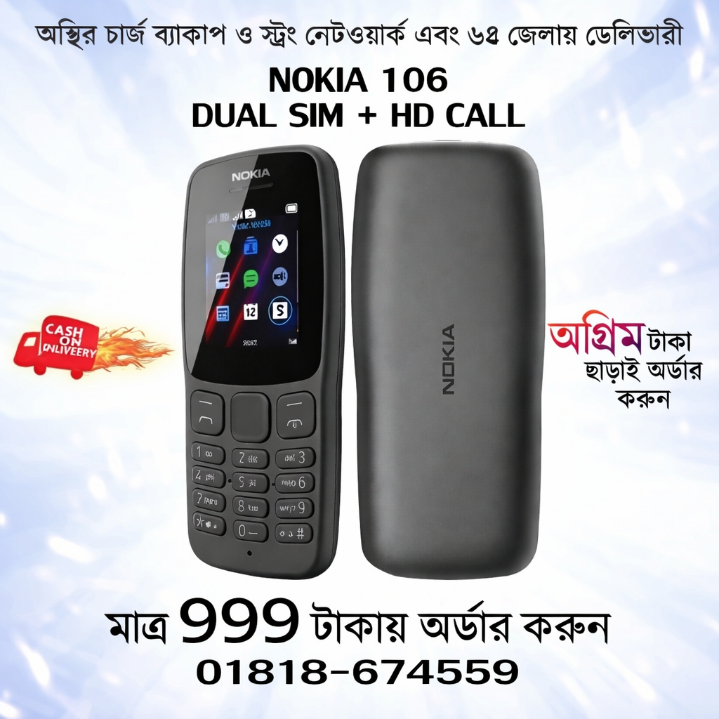 নোকিয়া ১০৫ ডুয়েল সিম Type-B চার্জারের বাটন মোবাইল