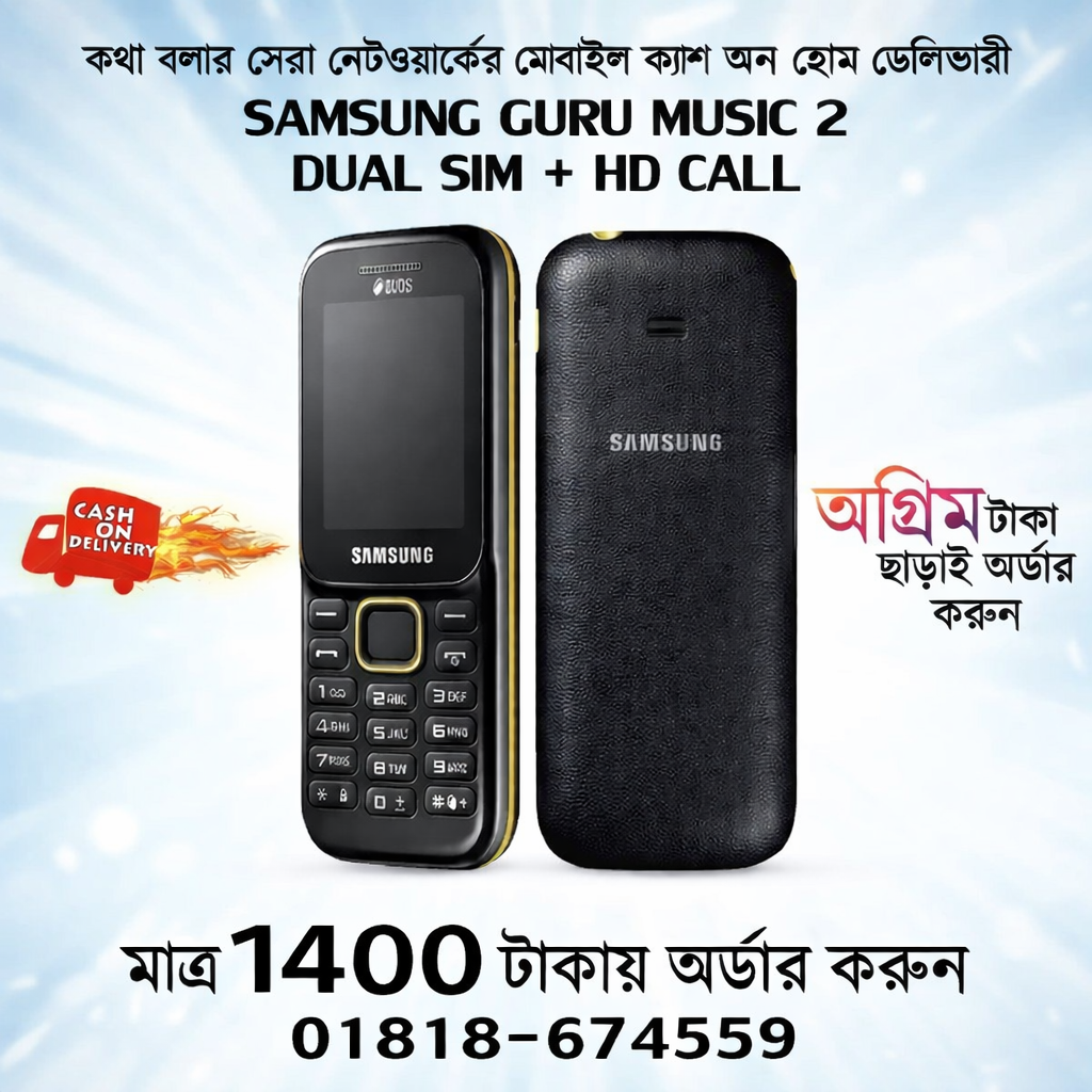 Samsung Guru Music 2 কথা বলার জন্য এবং রাফ ইউজ এর জন্য ভালো মানের মোবাইল। এতে দুই সিম ও মেমোরী সাপোর্ট করে এবং কথা বলার জন্য সেরা একটা সেট সকলের পছন্দের।