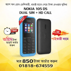নোকিয়া ১০৫ ডুয়েল সিম Type-B চার্জারের বাটন মোবাইল